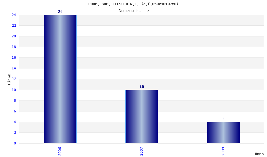 | Anno | Firme | Importi | Media | Naz. | Reg. | Prov. | Comu. |