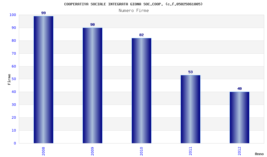 | Anno | Firme | Importi | Media | Naz. | Reg. | Prov. | Comu. |