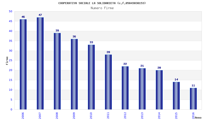 | Anno | Firme | Importi | Media | Naz. | Reg. | Prov. | Comu. |
