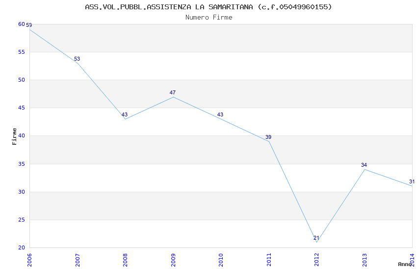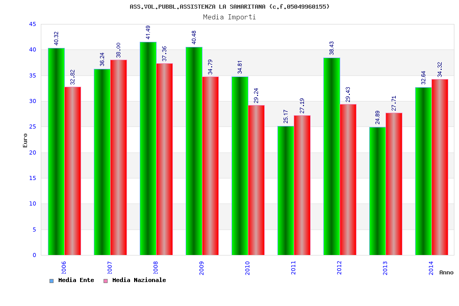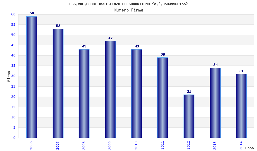 | Anno | Firme | Importi | Media | Naz. | Reg. | Prov. | Comu. |