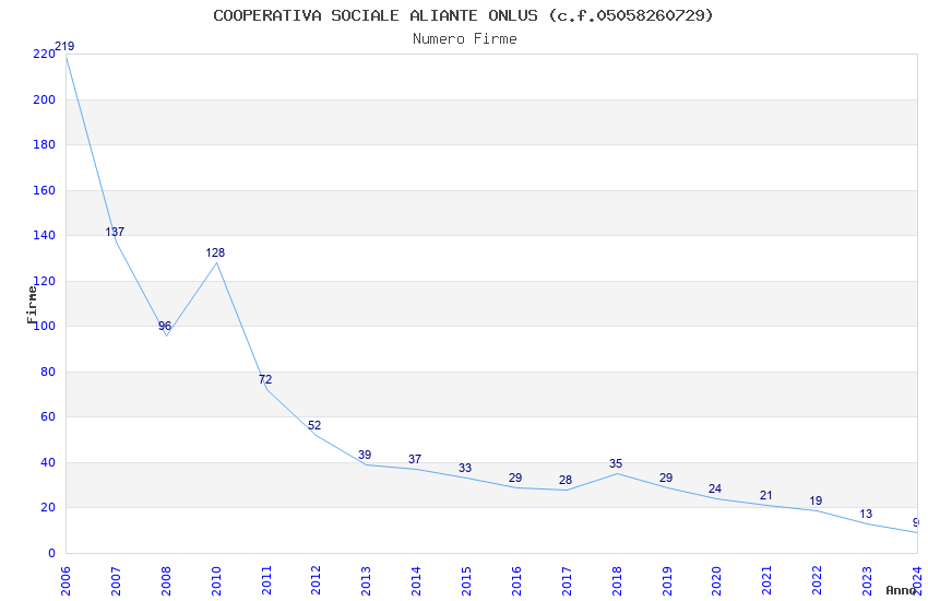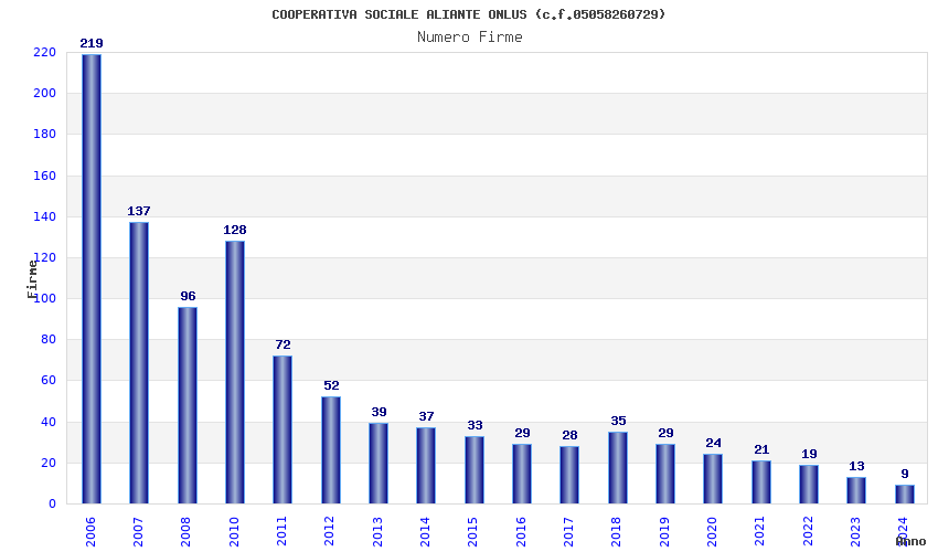 | Anno | Firme | Importi | Media | Naz. | Reg. | Prov. | Comu. |