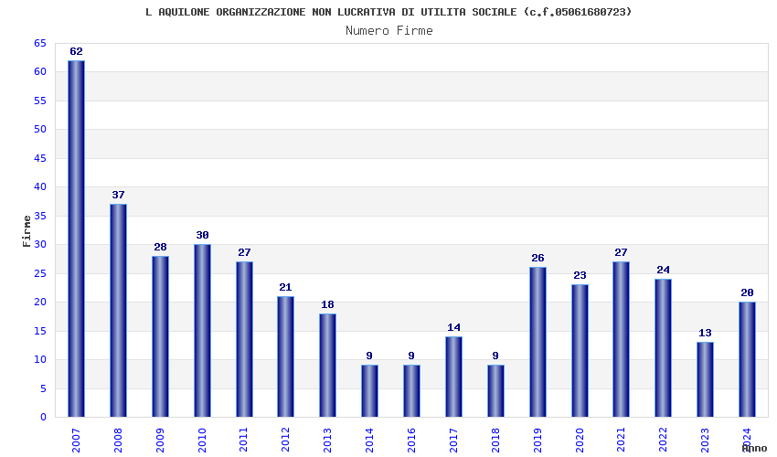 | Anno | Firme | Importi | Media | Naz. | Reg. | Prov. | Comu. |