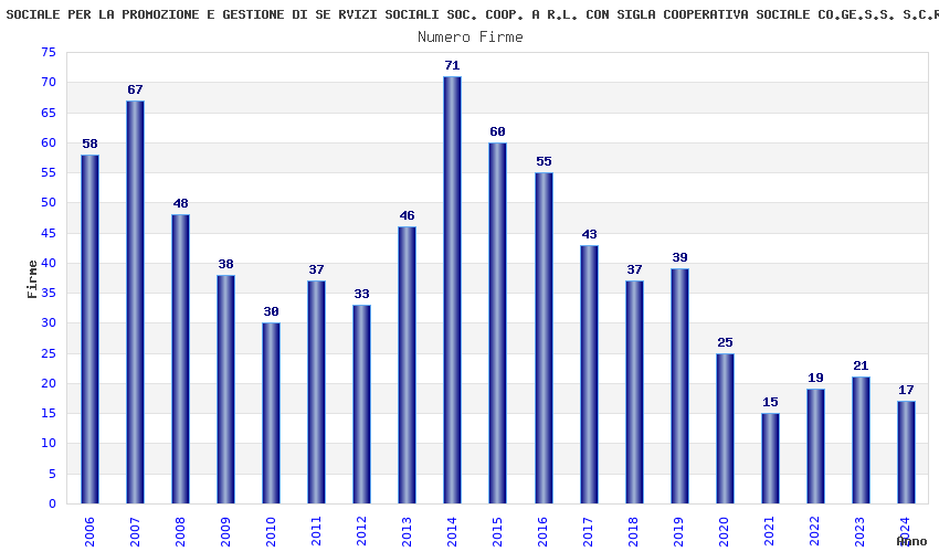 | Anno | Firme | Importi | Media | Naz. | Reg. | Prov. | Comu. |