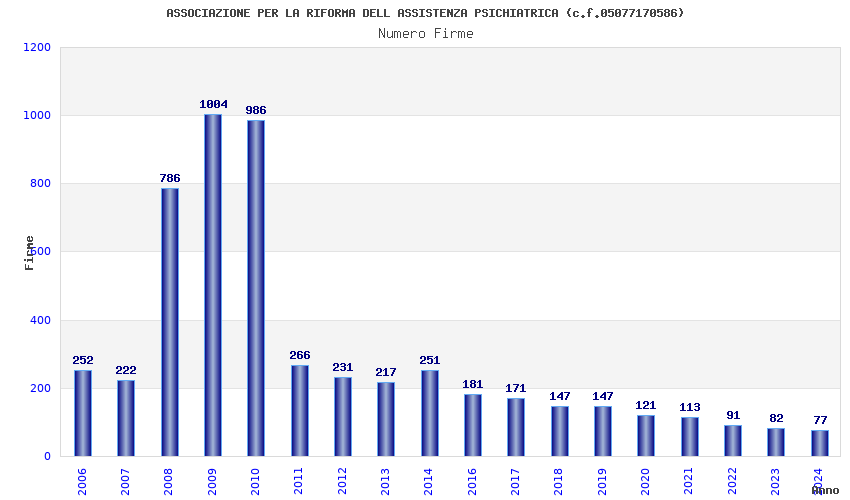| Anno | Firme | Importi | Media | Naz. | Reg. | Prov. | Comu. |