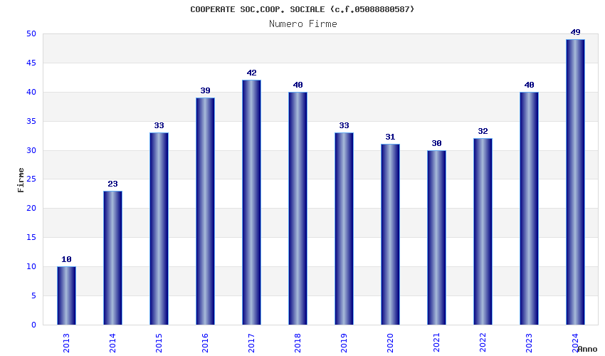 | Anno | Firme | Importi | Media | Naz. | Reg. | Prov. | Comu. |