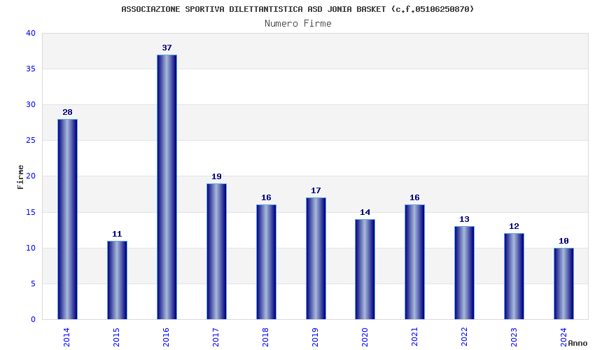 | Anno | Firme | Importi | Media | Naz. | Reg. | Prov. | Comu. |