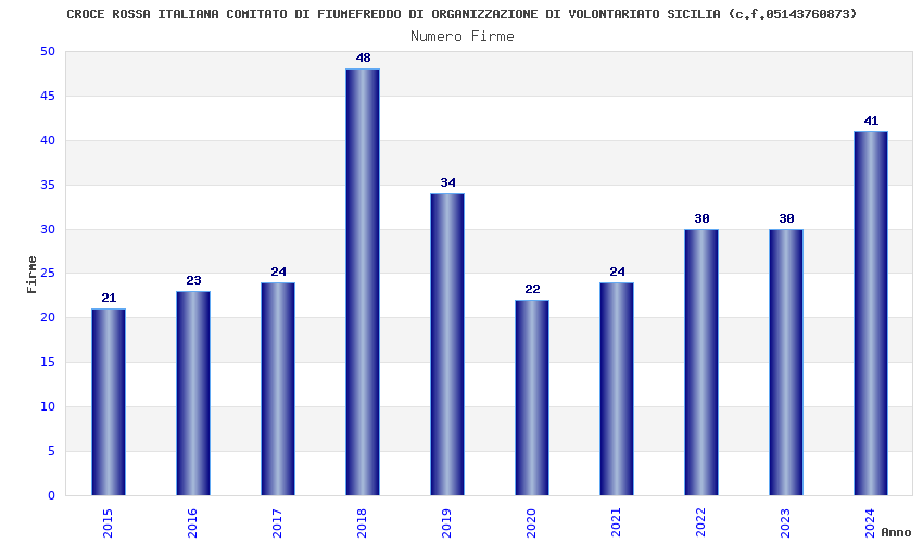 | Anno | Firme | Importi | Media | Naz. | Reg. | Prov. | Comu. |