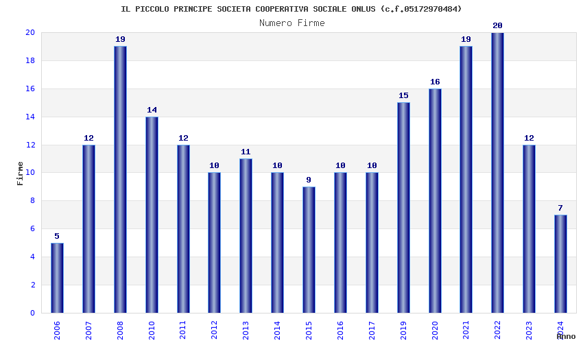 | Anno | Firme | Importi | Media | Naz. | Reg. | Prov. | Comu. |