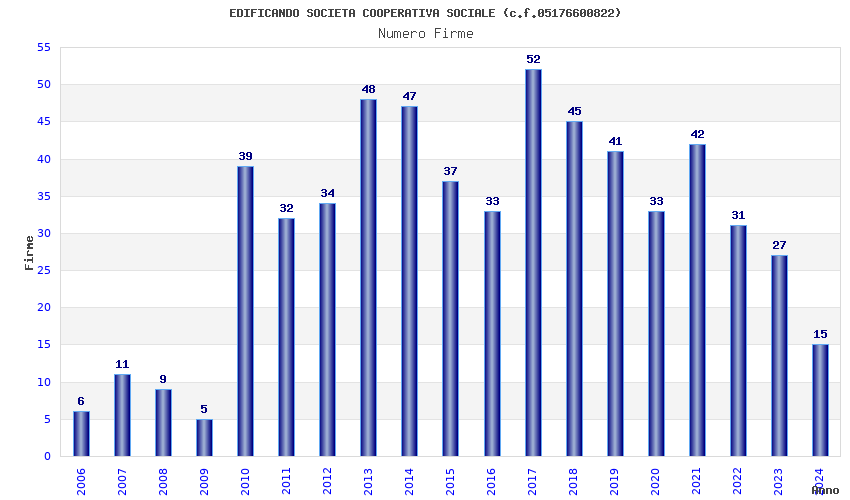 | Anno | Firme | Importi | Media | Naz. | Reg. | Prov. | Comu. |
