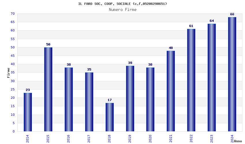| Anno | Firme | Importi | Media | Naz. | Reg. | Prov. | Comu. |