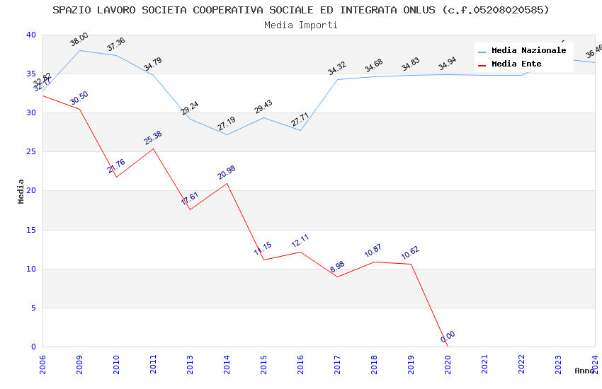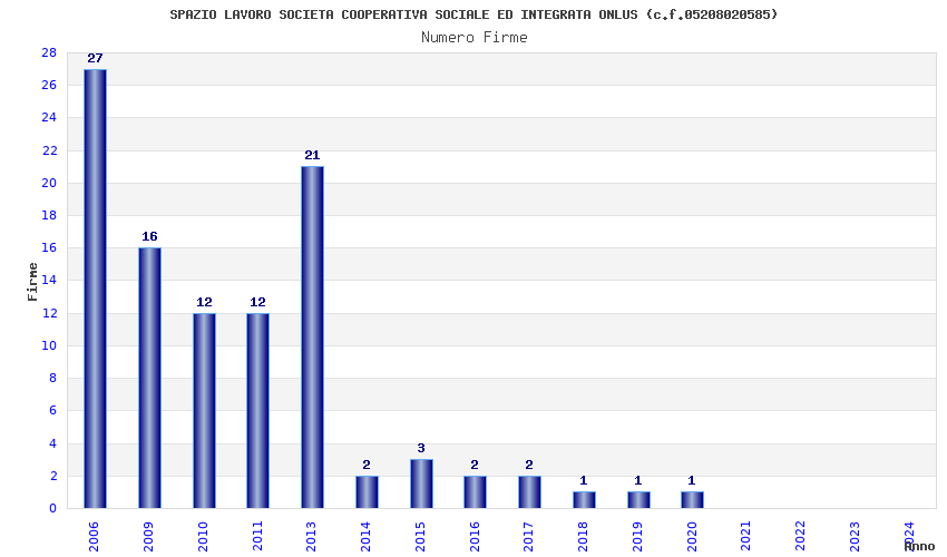 | Anno | Firme | Importi | Media | Naz. | Reg. | Prov. | Comu. |