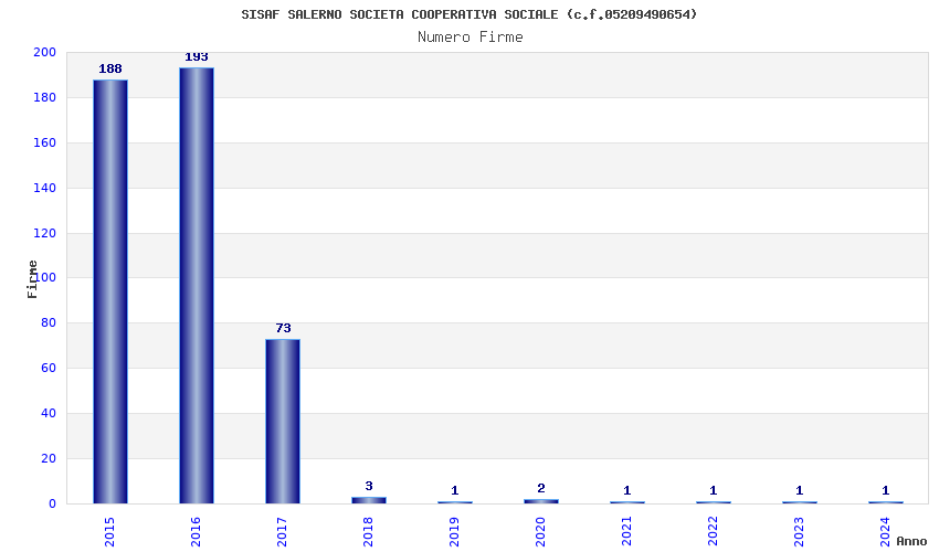 | Anno | Firme | Importi | Media | Naz. | Reg. | Prov. | Comu. |