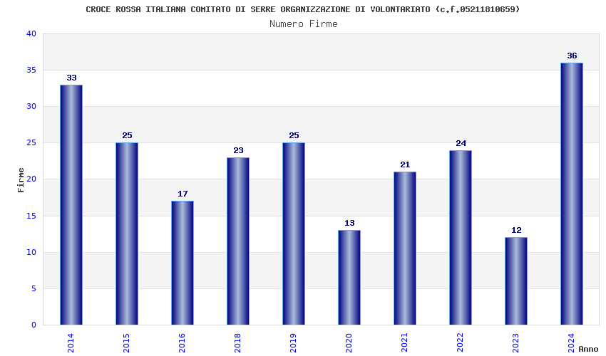 | Anno | Firme | Importi | Media | Naz. | Reg. | Prov. | Comu. |