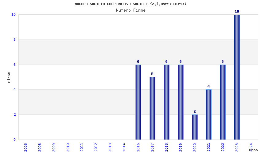 | Anno | Firme | Importi | Media | Naz. | Reg. | Prov. | Comu. |