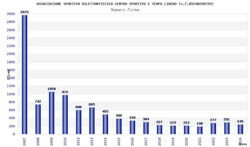 | Anno | Firme | Importi | Media | Naz. | Reg. | Prov. | Comu. |