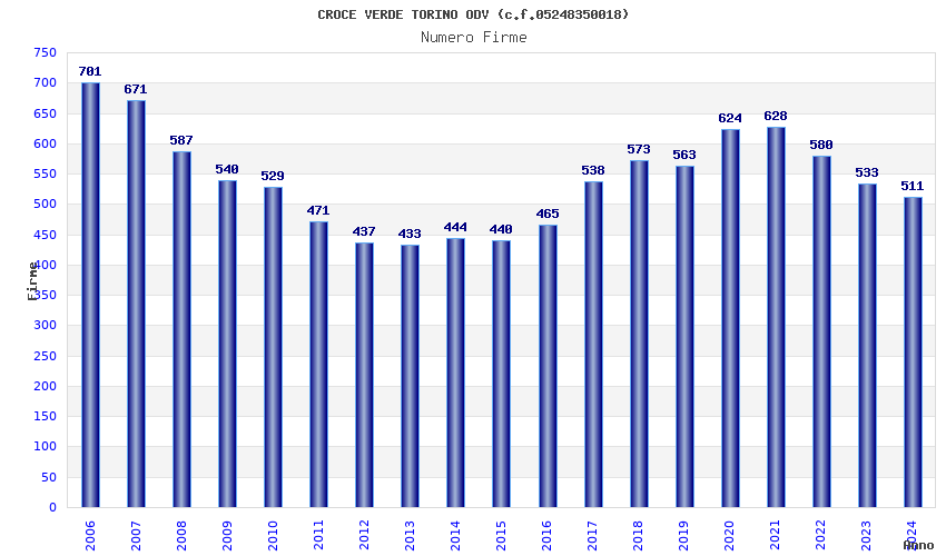 | Anno | Firme | Importi | Media | Naz. | Reg. | Prov. | Comu. |