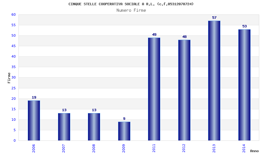 | Anno | Firme | Importi | Media | Naz. | Reg. | Prov. | Comu. |
