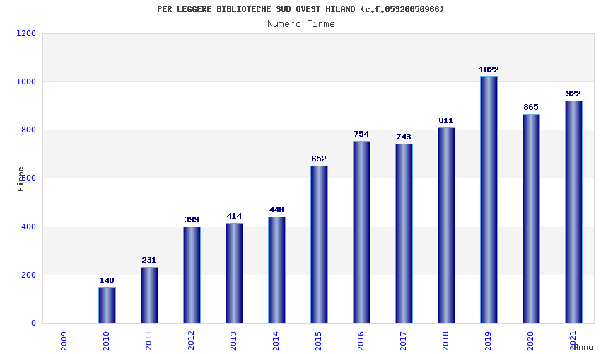 | Anno | Firme | Importi | Media | Naz. | Reg. | Prov. | Comu. |