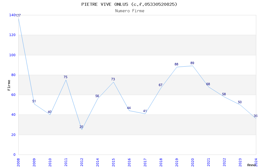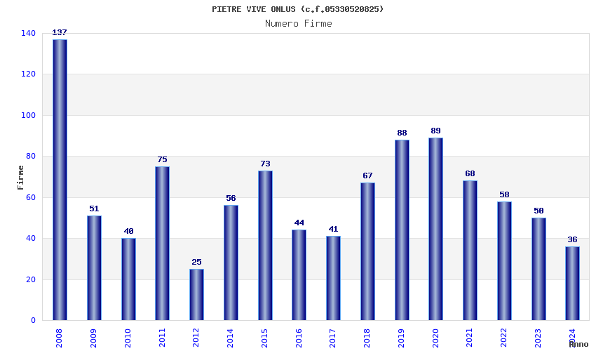 | Anno | Firme | Importi | Media | Naz. | Reg. | Prov. | Comu. |