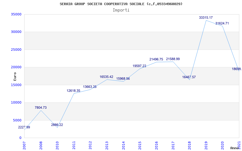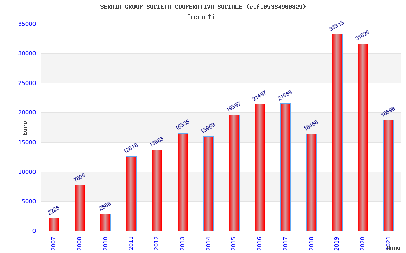 | Anno | Firme | Importi | Media | Naz. | Reg. | Prov. | Comu. |