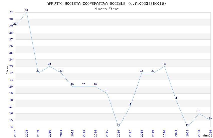 | 2020 | 23 | 764,66 | 33,25 | 40.701 | 3.499 | 1.687 | 8 |