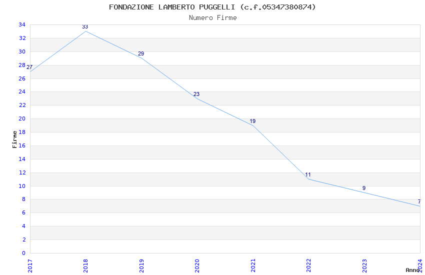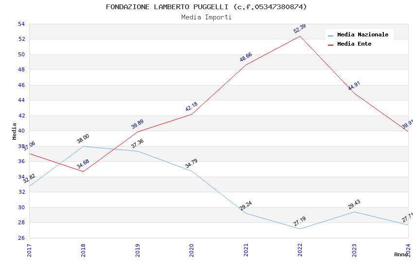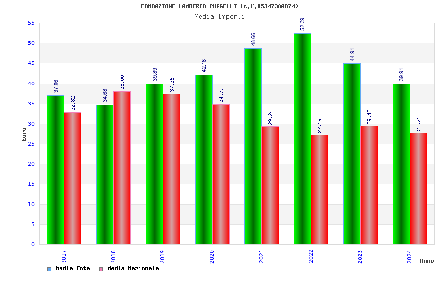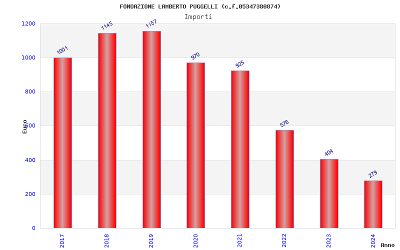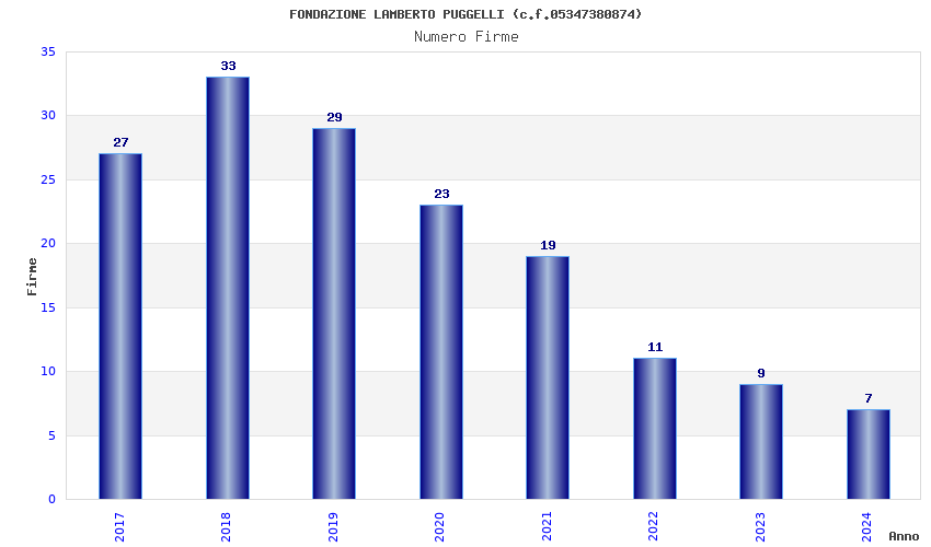 | Anno | Firme | Importi | Media | Naz. | Reg. | Prov. | Comu. |