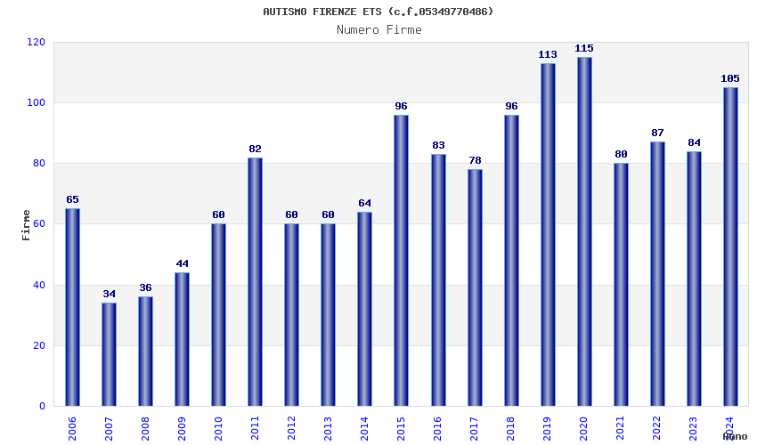 | Anno | Firme | Importi | Media | Naz. | Reg. | Prov. | Comu. |
