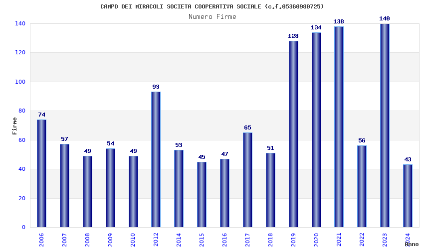 | Anno | Firme | Importi | Media | Naz. | Reg. | Prov. | Comu. |