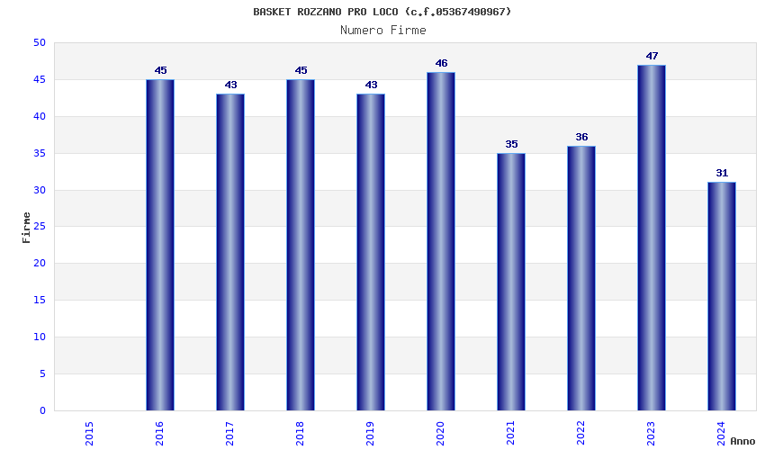 | Anno | Firme | Importi | Media | Naz. | Reg. | Prov. | Comu. |