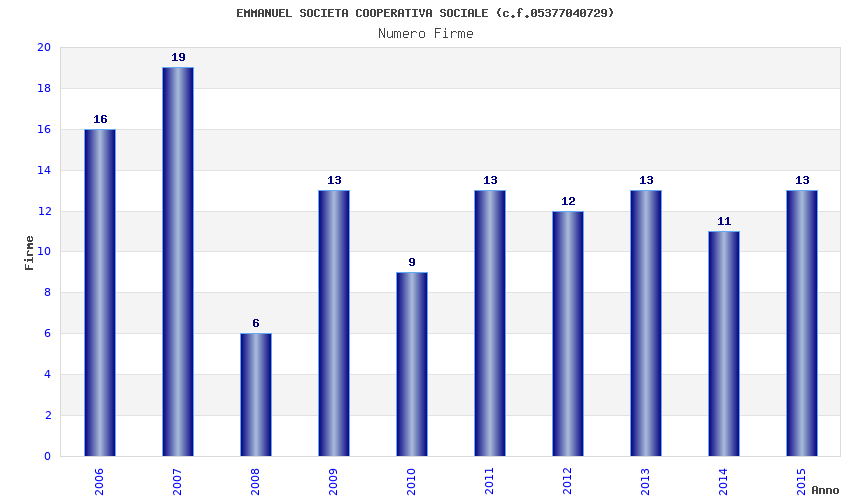| Anno | Firme | Importi | Media | Naz. | Reg. | Prov. | Comu. |