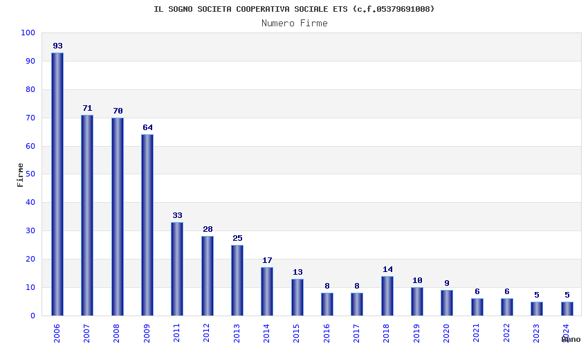 | Anno | Firme | Importi | Media | Naz. | Reg. | Prov. | Comu. |