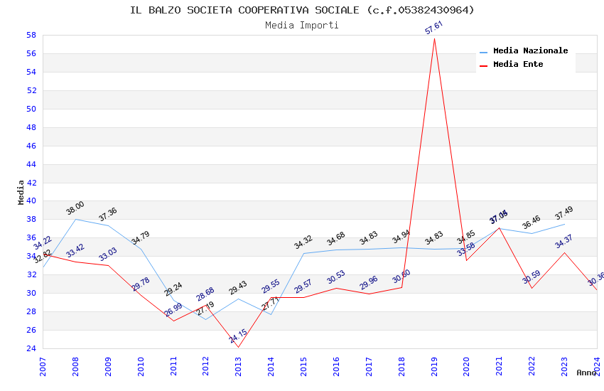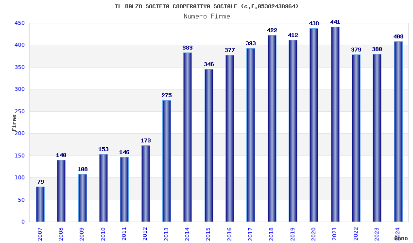| Anno | Firme | Importi | Media | Naz. | Reg. | Prov. | Comu. |