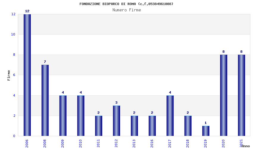 | Anno | Firme | Importi | Media | Naz. | Reg. | Prov. | Comu. |