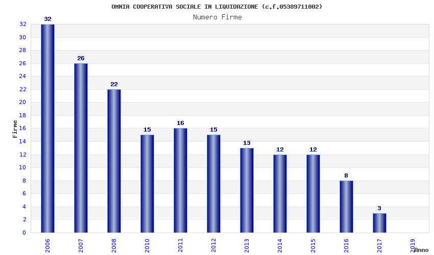 | Anno | Firme | Importi | Media | Naz. | Reg. | Prov. | Comu. |