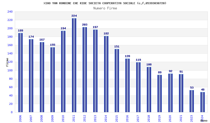| 2011 | 224 | 3.567,36 | 15,93 | 10.197 | 466 | 37 | 6 |
