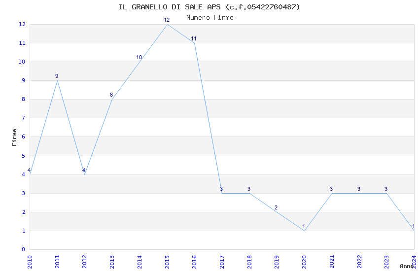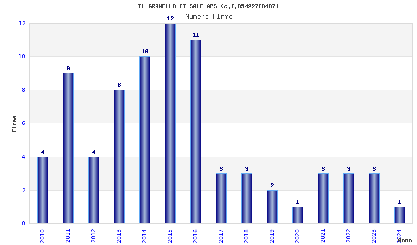 | Anno | Firme | Importi | Media | Naz. | Reg. | Prov. | Comu. |