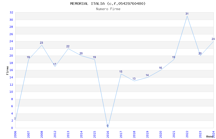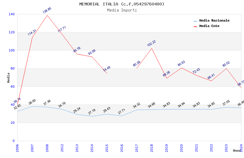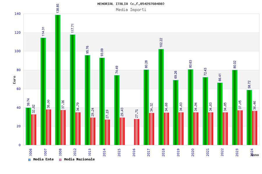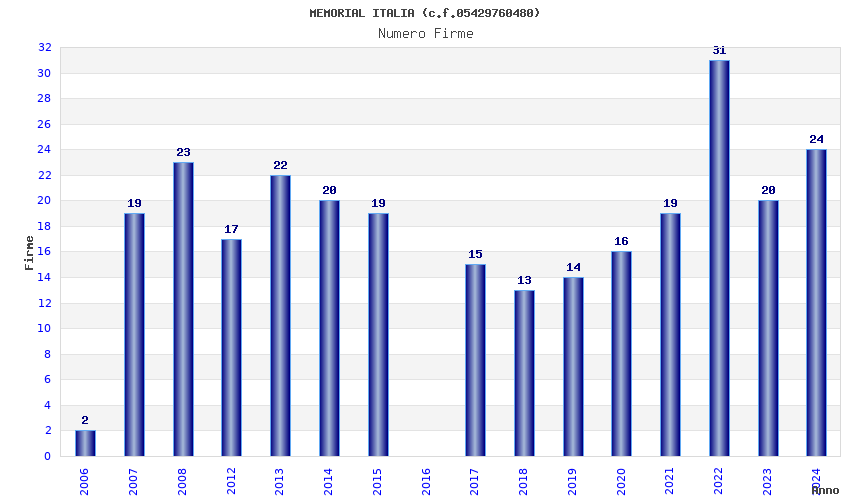 | Anno | Firme | Importi | Media | Naz. | Reg. | Prov. | Comu. |
