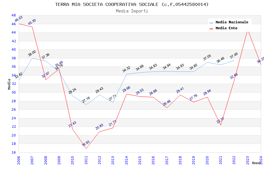 | Anno | Firme | Importi | Media | Naz. | Reg. | Prov. | Comu. |