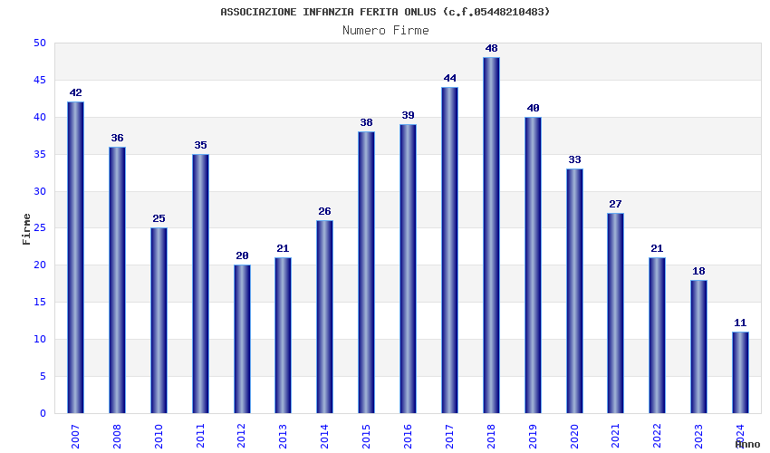 | Anno | Firme | Importi | Media | Naz. | Reg. | Prov. | Comu. |
