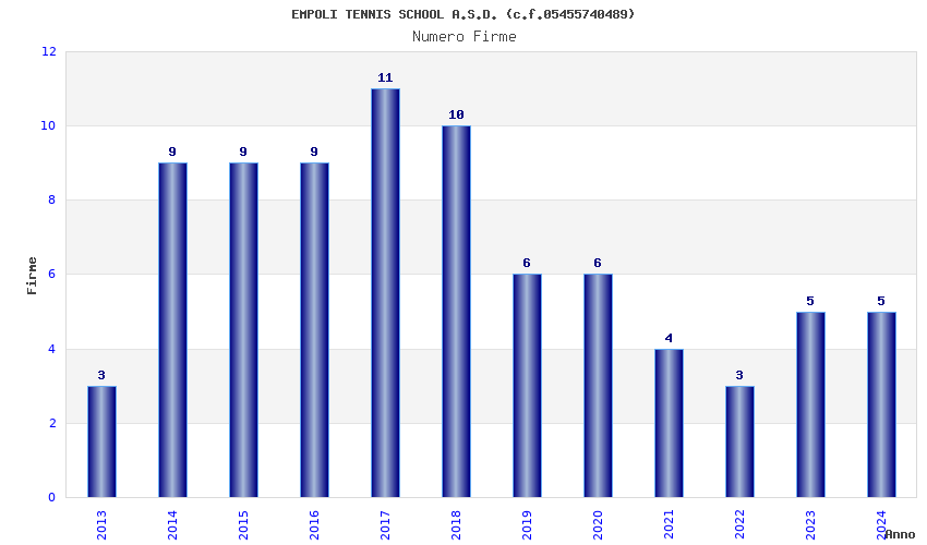 | Anno | Firme | Importi | Media | Naz. | Reg. | Prov. | Comu. |