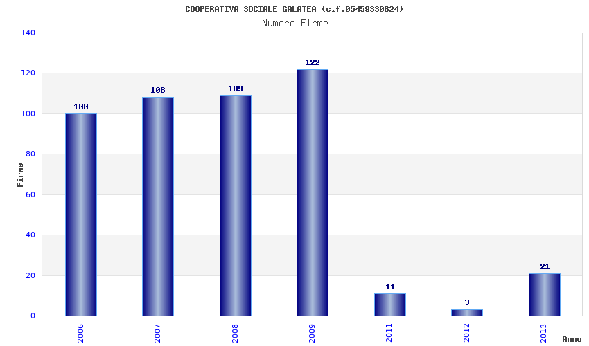 | Anno | Firme | Importi | Media | Naz. | Reg. | Prov. | Comu. |