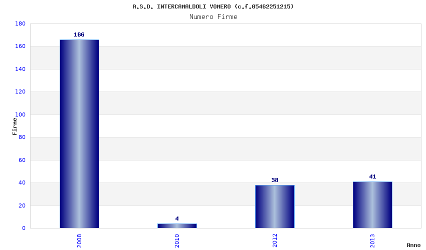 | Anno | Firme | Importi | Media | Naz. | Reg. | Prov. | Comu. |