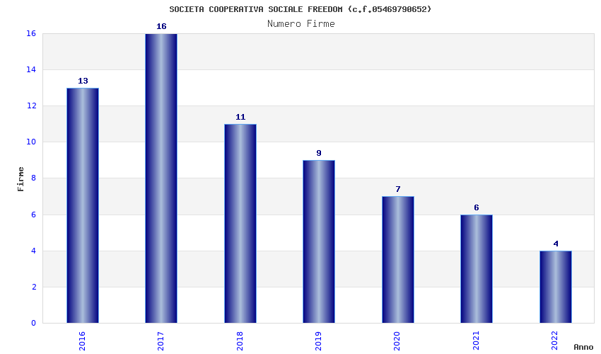 | Anno | Firme | Importi | Media | Naz. | Reg. | Prov. | Comu. |