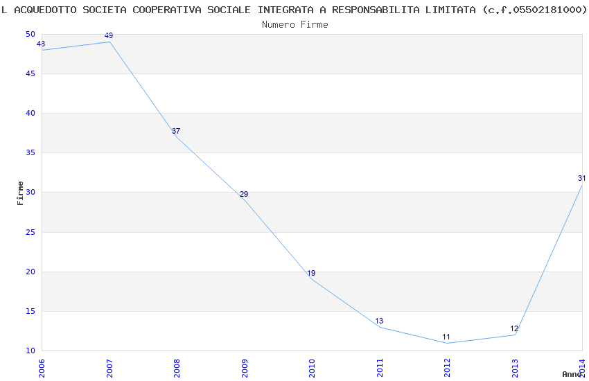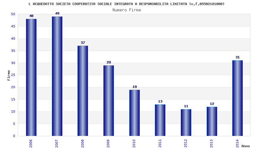 | Anno | Firme | Importi | Media | Naz. | Reg. | Prov. | Comu. |