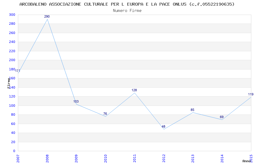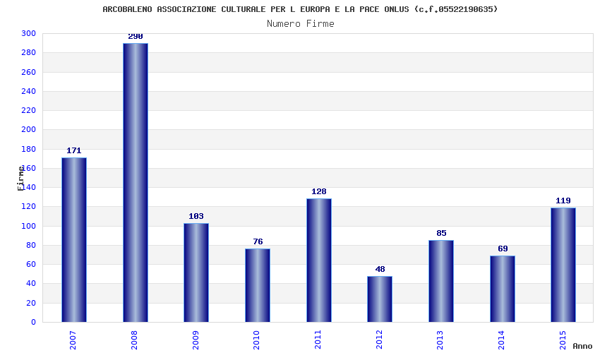 | Anno | Firme | Importi | Media | Naz. | Reg. | Prov. | Comu. |