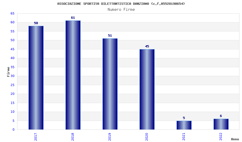 | Anno | Firme | Importi | Media | Naz. | Reg. | Prov. | Comu. |