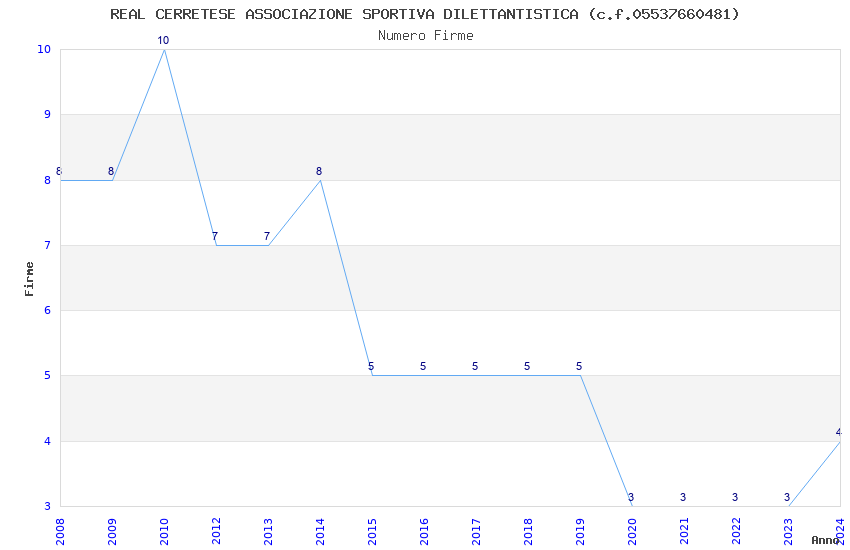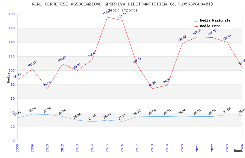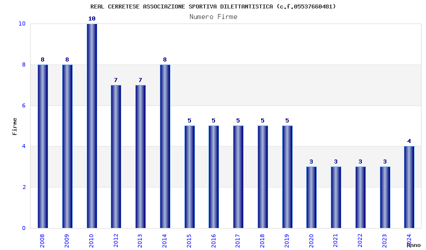 | Anno | Firme | Importi | Media | Naz. | Reg. | Prov. | Comu. |