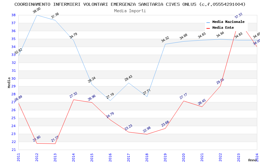 | Anno | Firme | Importi | Media | Naz. | Reg. | Prov. | Comu. |