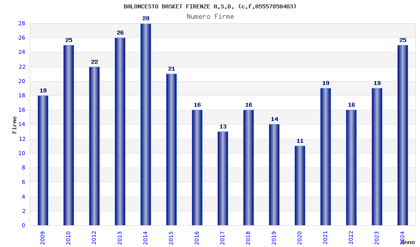 | Anno | Firme | Importi | Media | Naz. | Reg. | Prov. | Comu. |