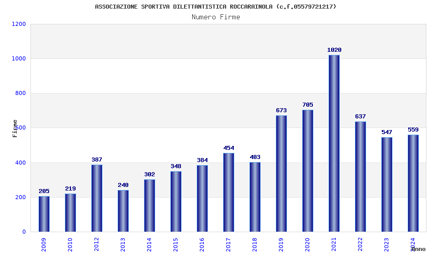 | Anno | Firme | Importi | Media | Naz. | Reg. | Prov. | Comu. |